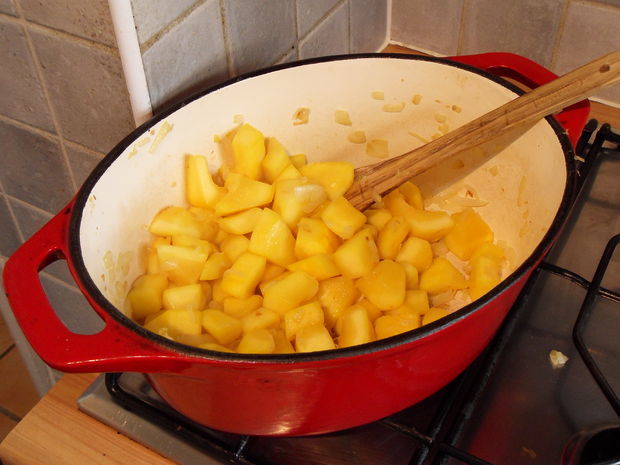 Мелко нарезаем чеснок и крошим бульонные кубики