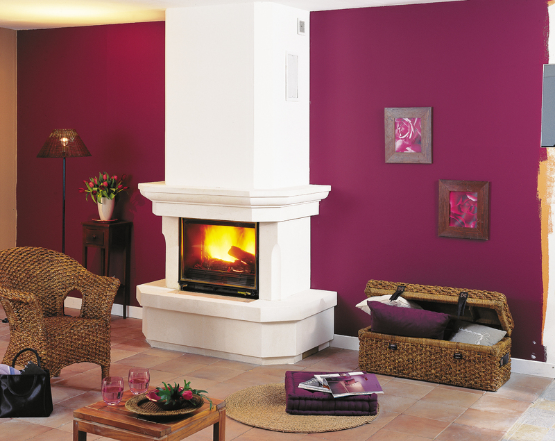 Встроенный газовый камин с рисунком на жаропрочном стекле фото