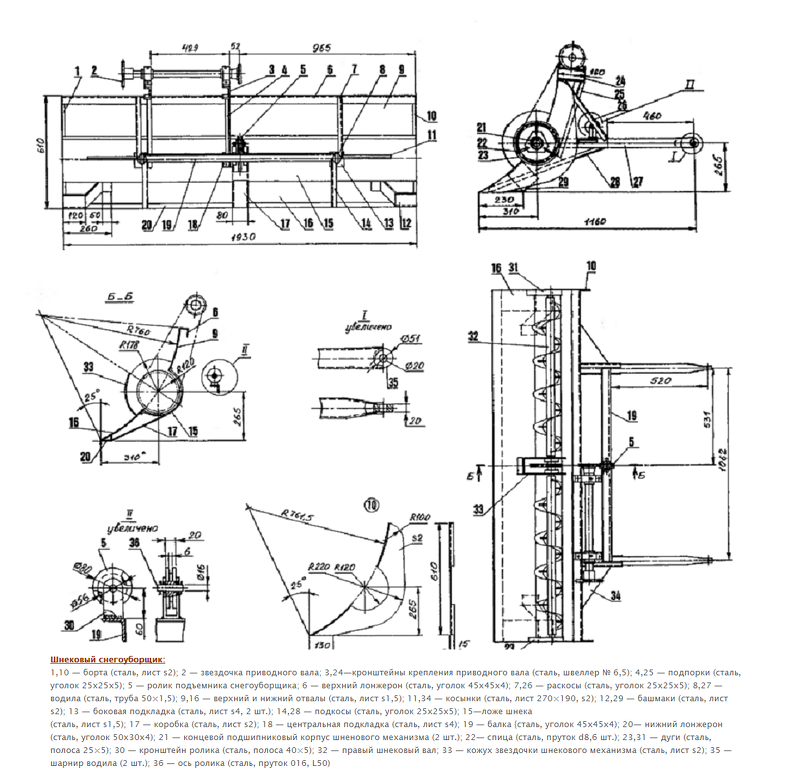 Схема сборки шнекового снегоуборщика своими руками