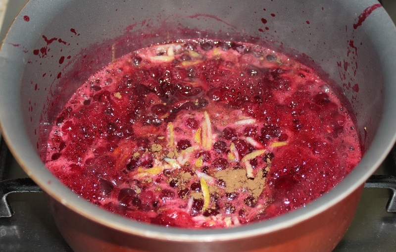 Провариваем ягоды клюквы для соуса на День Благодарения
