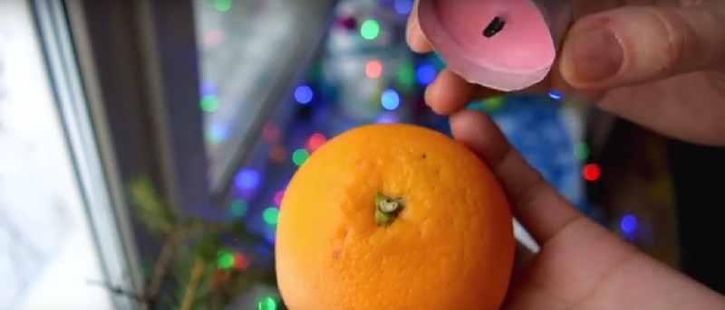 Прикладываем свечу к хвостику апельсина