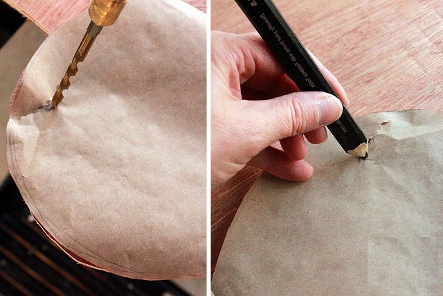 Делаем муляж из папиросной бумаги в форме сердца и дублируем на фанеру