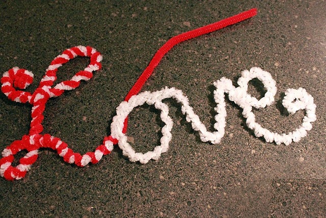 Закрепите слово из проволоки праздничной красной или розовой лентой