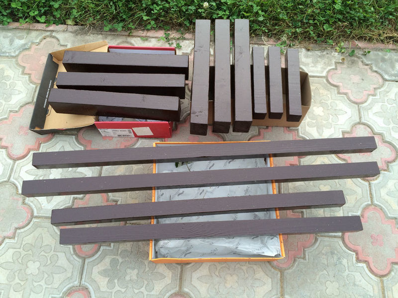 Покрашенные бруски для ножек лавочки