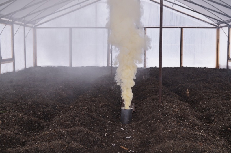 Протравливание теплицы серной шашкой