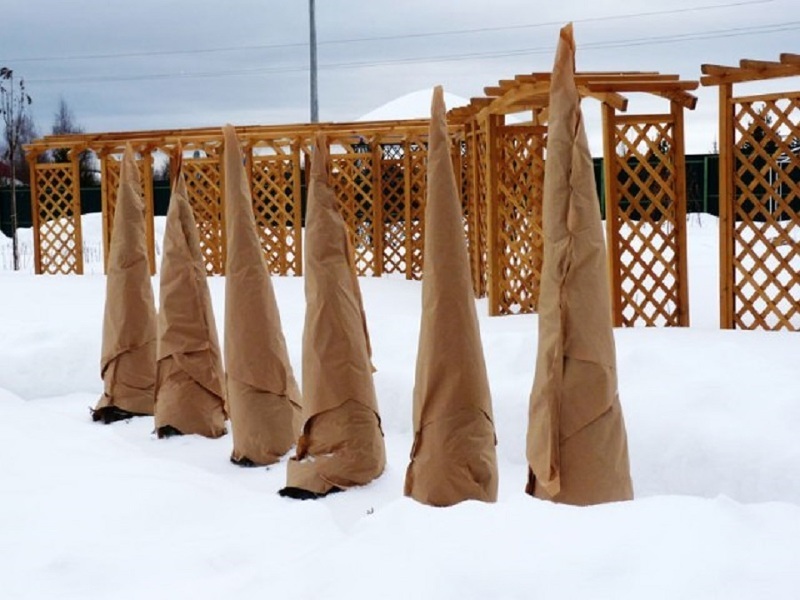 Укрытие туи многоразовыми чехлами из хлопчатобумажной ткани