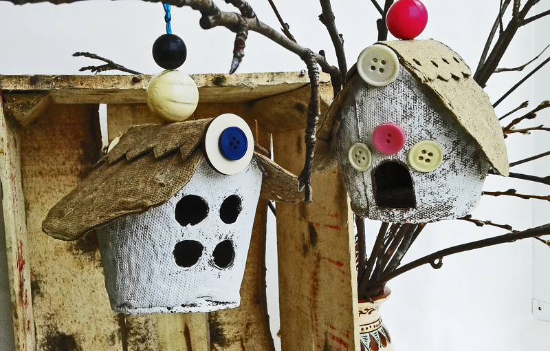 Галерея / Декоративный домик - скворечник из торфяных горшочков