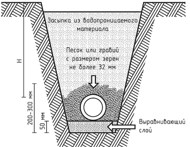 Схема укладки труб водопровода для защиты от замерзания