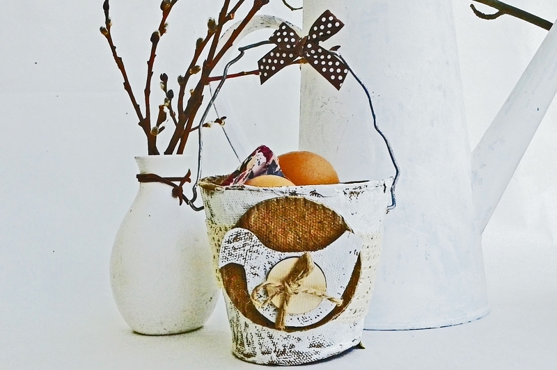 Галерея / Ведерко для пасхальных яиц из торфяного горшочка