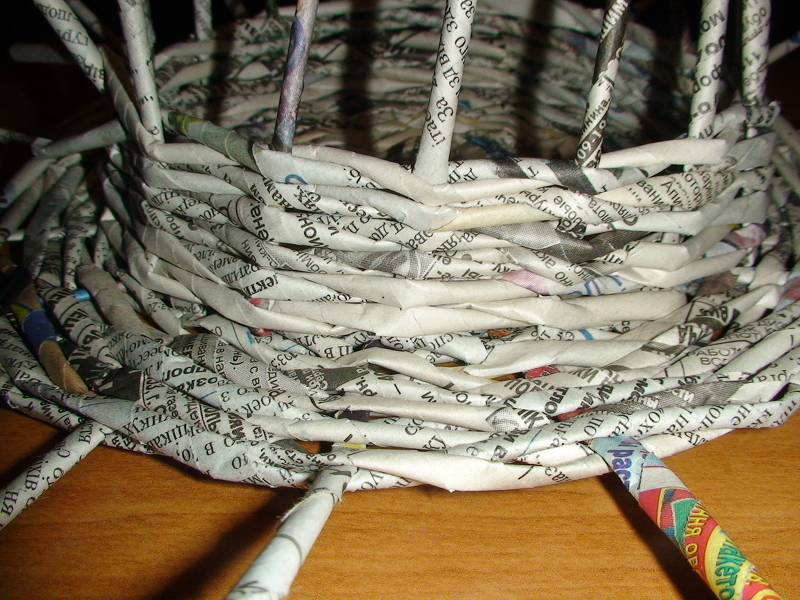 Завершаем скручивание трубочки из газеты