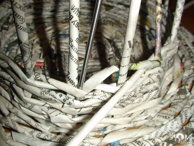 Завершаем скручивание трубочки из газеты