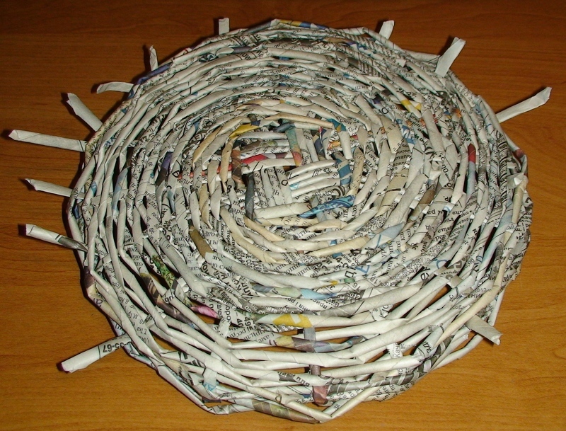 Завершаем скручивание трубочки из газеты