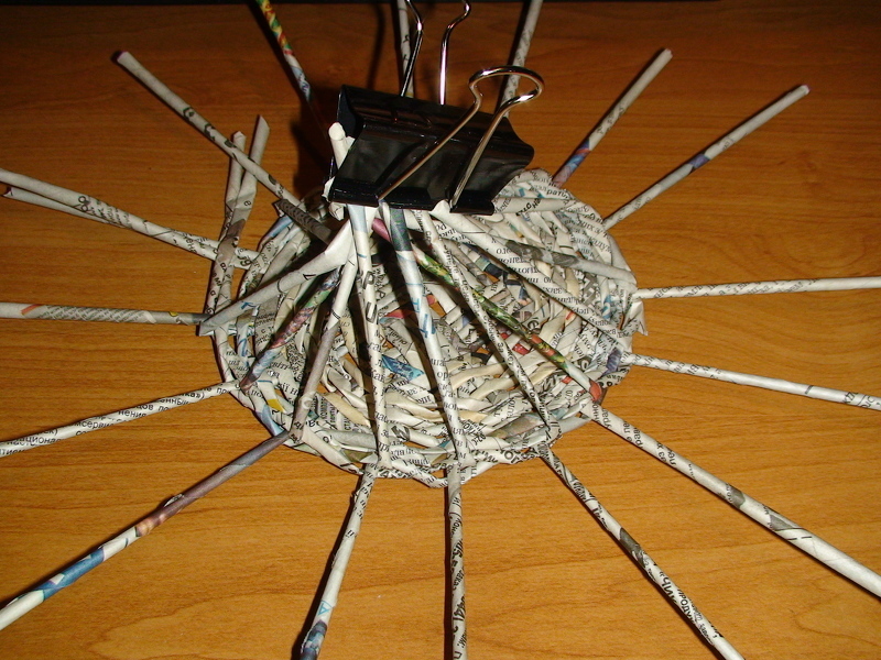 Поднимаем часть основных прутиков вверх и фиксируем прищепкой