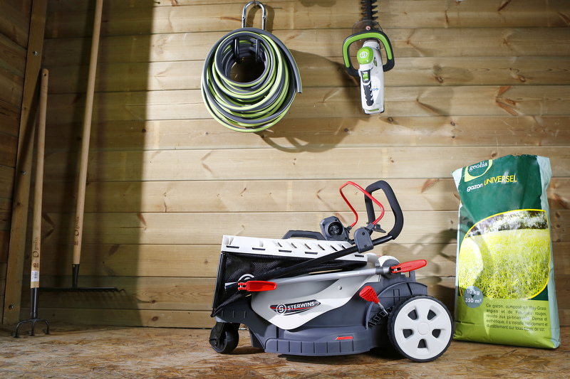 Хранение газонокосилки Sterwins в подсобном помещении