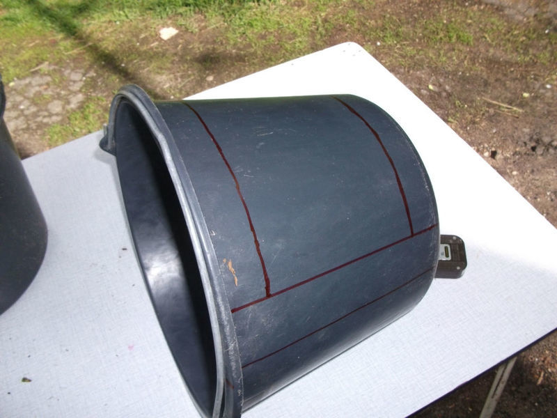 Выпилите фрагменты стенок ведра