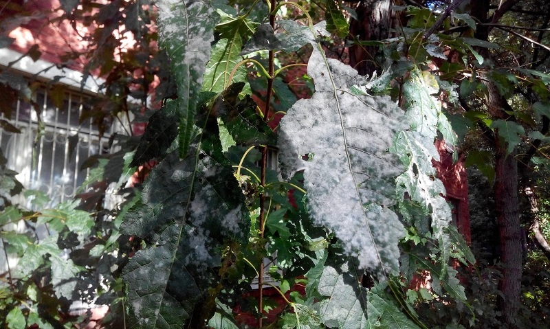 На листьях зараженных растений появляется мицелия – грибницы в виде белого налета