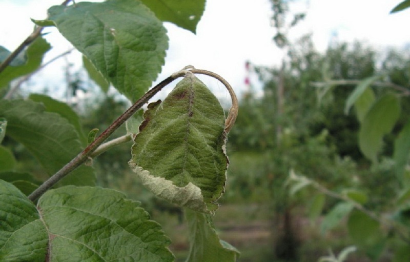 На побегах и листках появляются бурые пятна, которые приводят к их усыханию