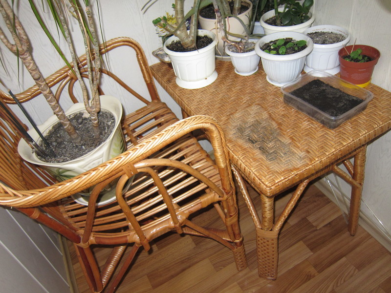Плесень на плетеном столе на даче