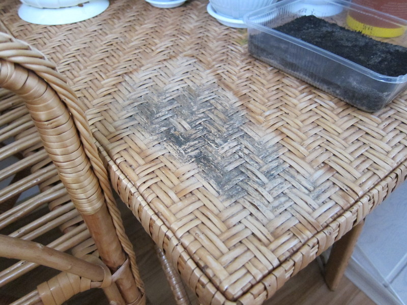 Плесень на плетеном столе на даче