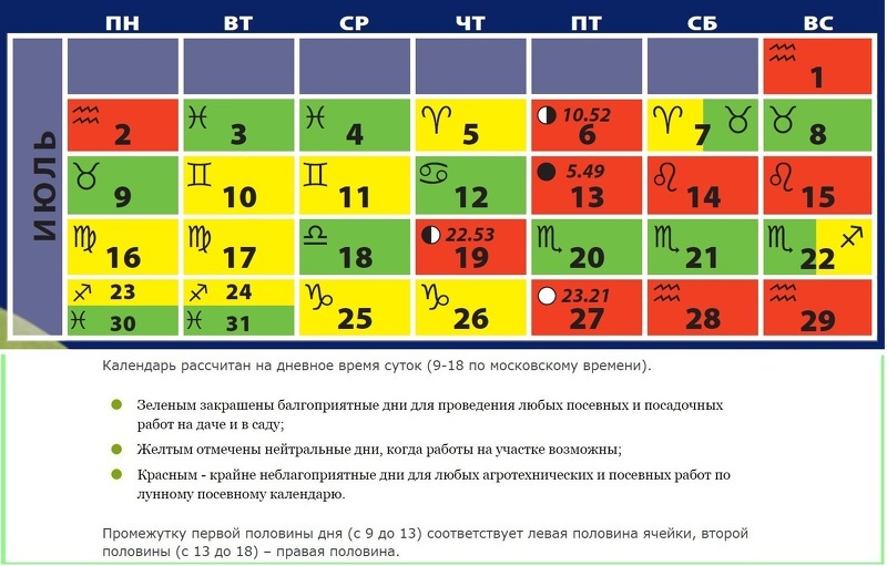 Пояснительная таблица обозначений лунных фаз и Знаков Зодиака