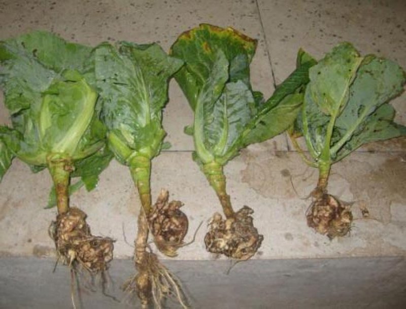 Корни капусты, пораженные килой