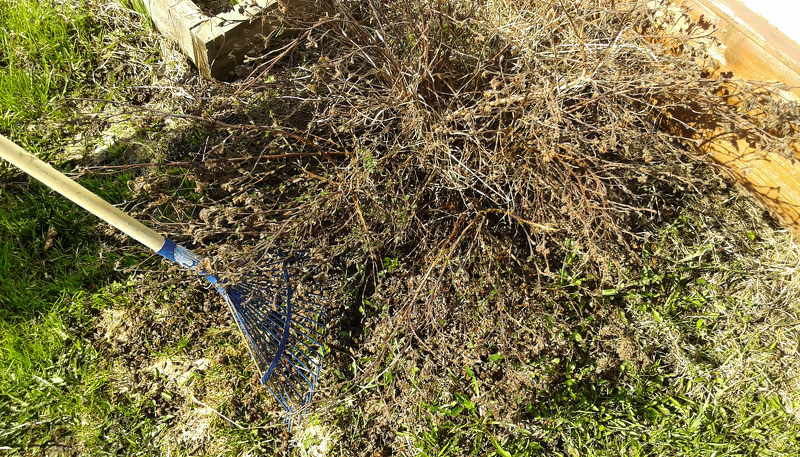 Весенняя уборка старой листвы и травы