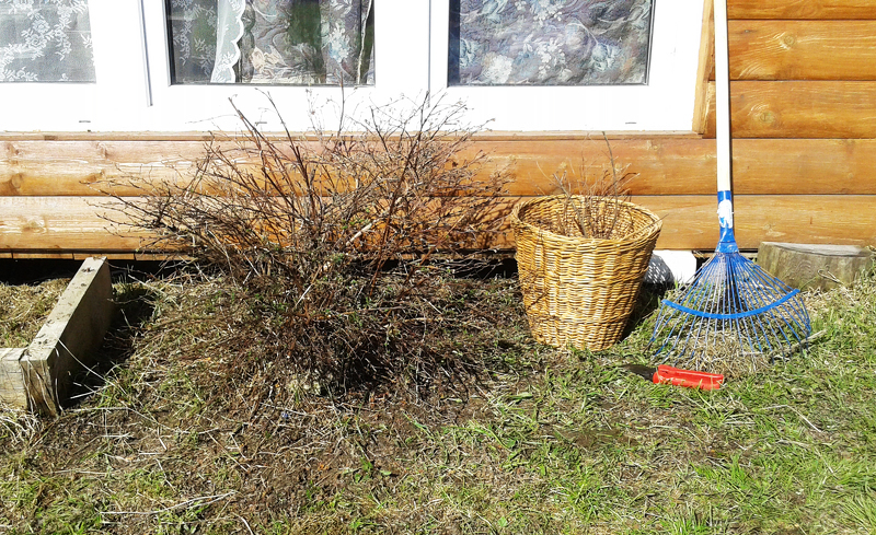 Весенняя уборка старой листвы и травы