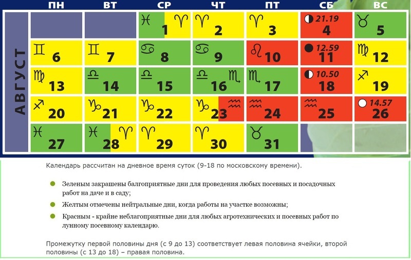 Пояснительная таблица обозначений лунных фаз и Знаков Зодиака