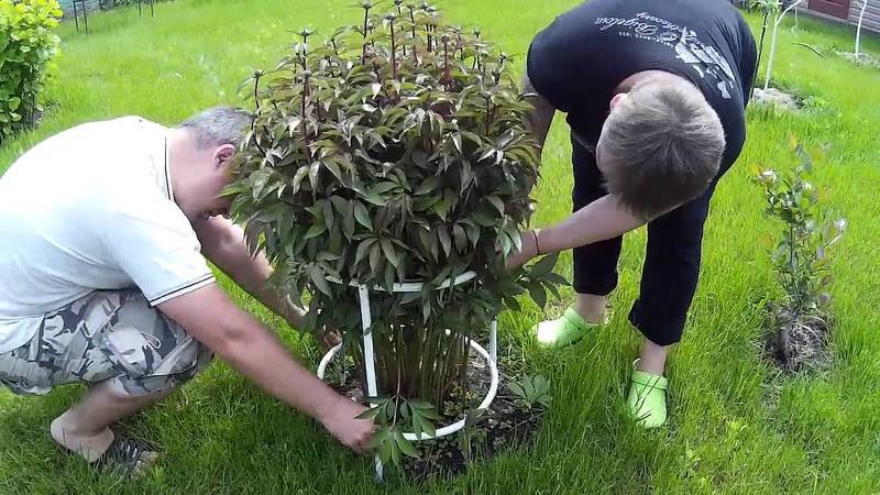 Установка подпорок под пионы