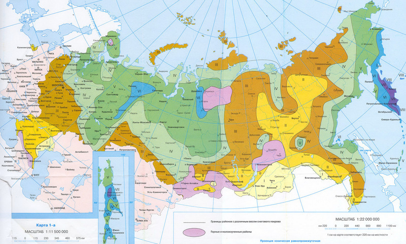 Снеговые нагрузки по регионам России и прилегающим странам