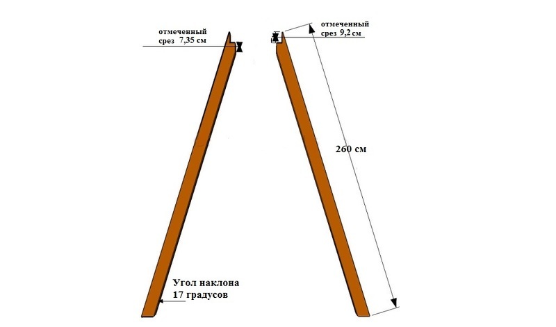 Подготавливаем верхушки боковых брусьев по указанному чертежу