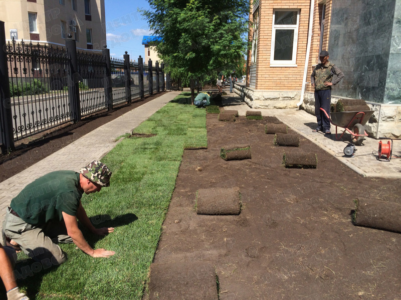 Галерея / Рулонный газон: технология укладки своими руками