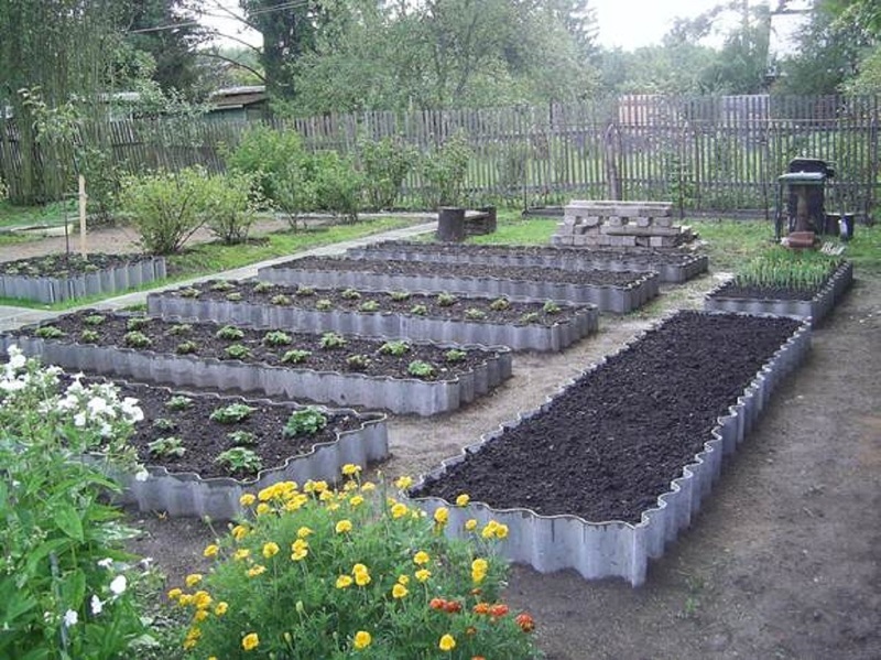 Ограждения из металлического шифера для грядок