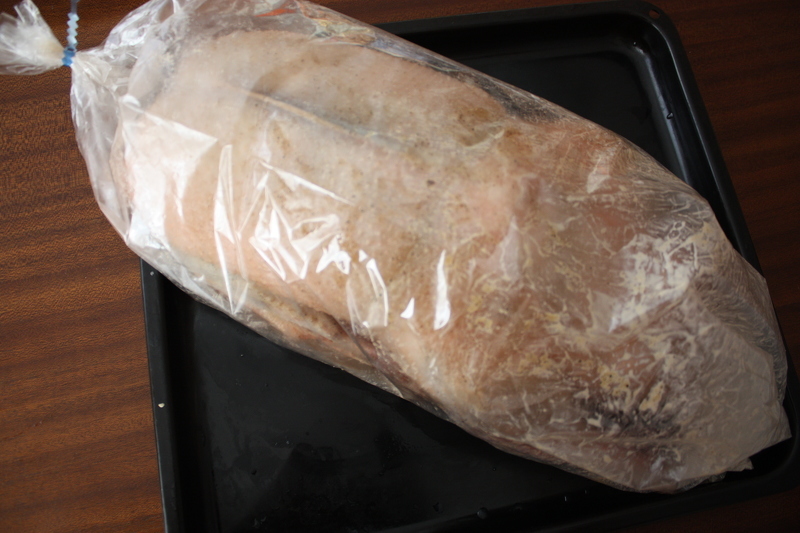 Помещаем тушку гуся в рукав для запекания
