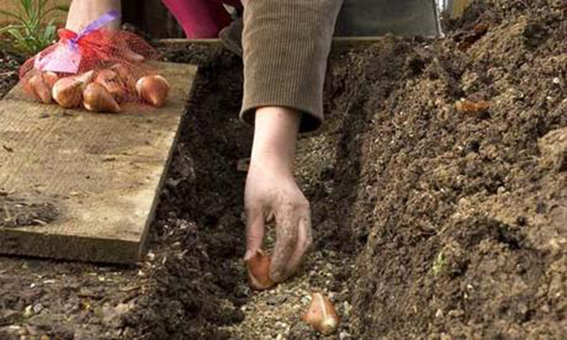 Посадка тюльпанов в песчаную борозду