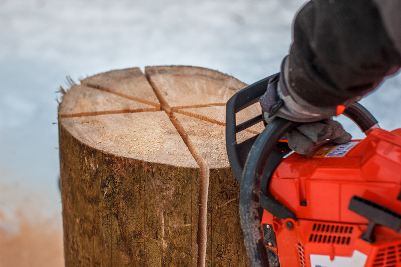 Распиливаем часть ствола бензопилой от компании Husqvarna