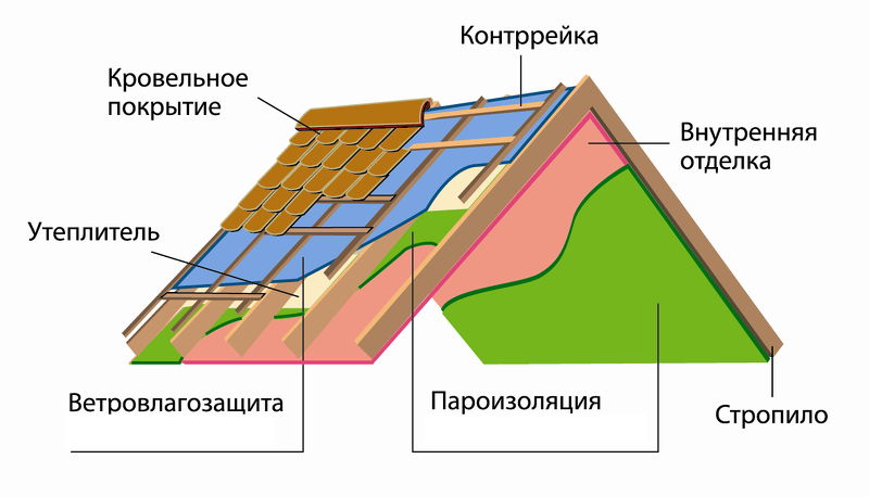 Пароизоляция. Устройство крыши из профнастила схема