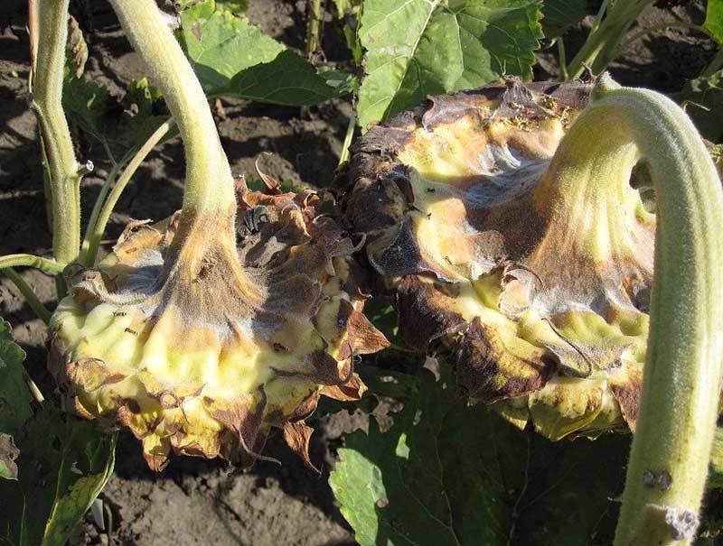 Корзинки подсолнечника пораженные серой гнилью