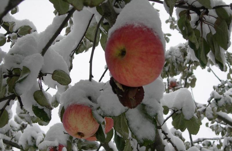 Сорта яблонь для Сибири: яблоки в снегу