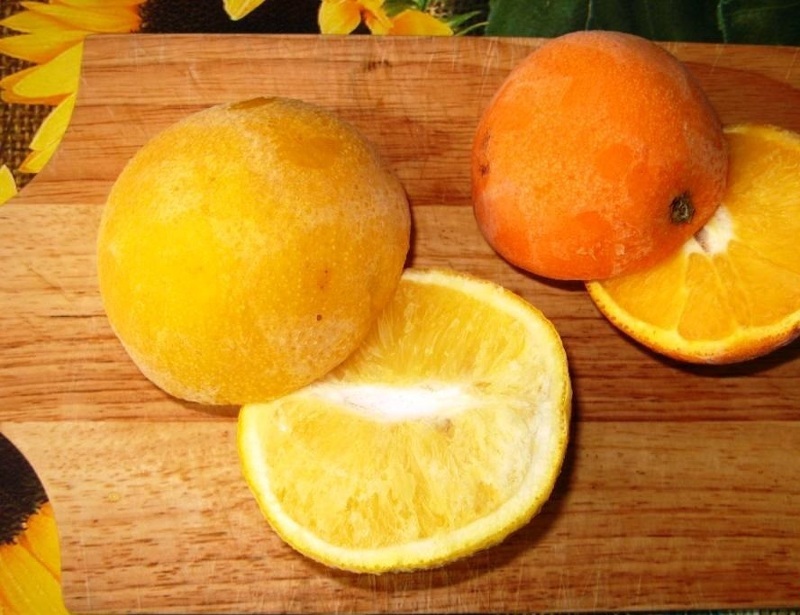 Нарезаем подмороженные фрукты для приготовления лимонада