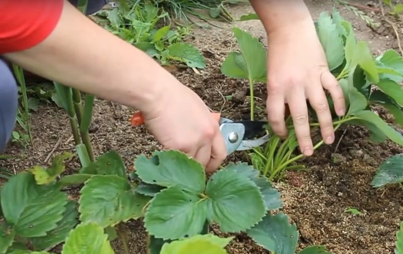 Обрезка клубники после сбора урожая: прикапываем нужные, остальные обрезаем