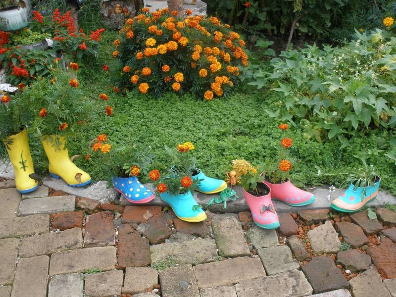 Необычные украшения для сада из обуви
